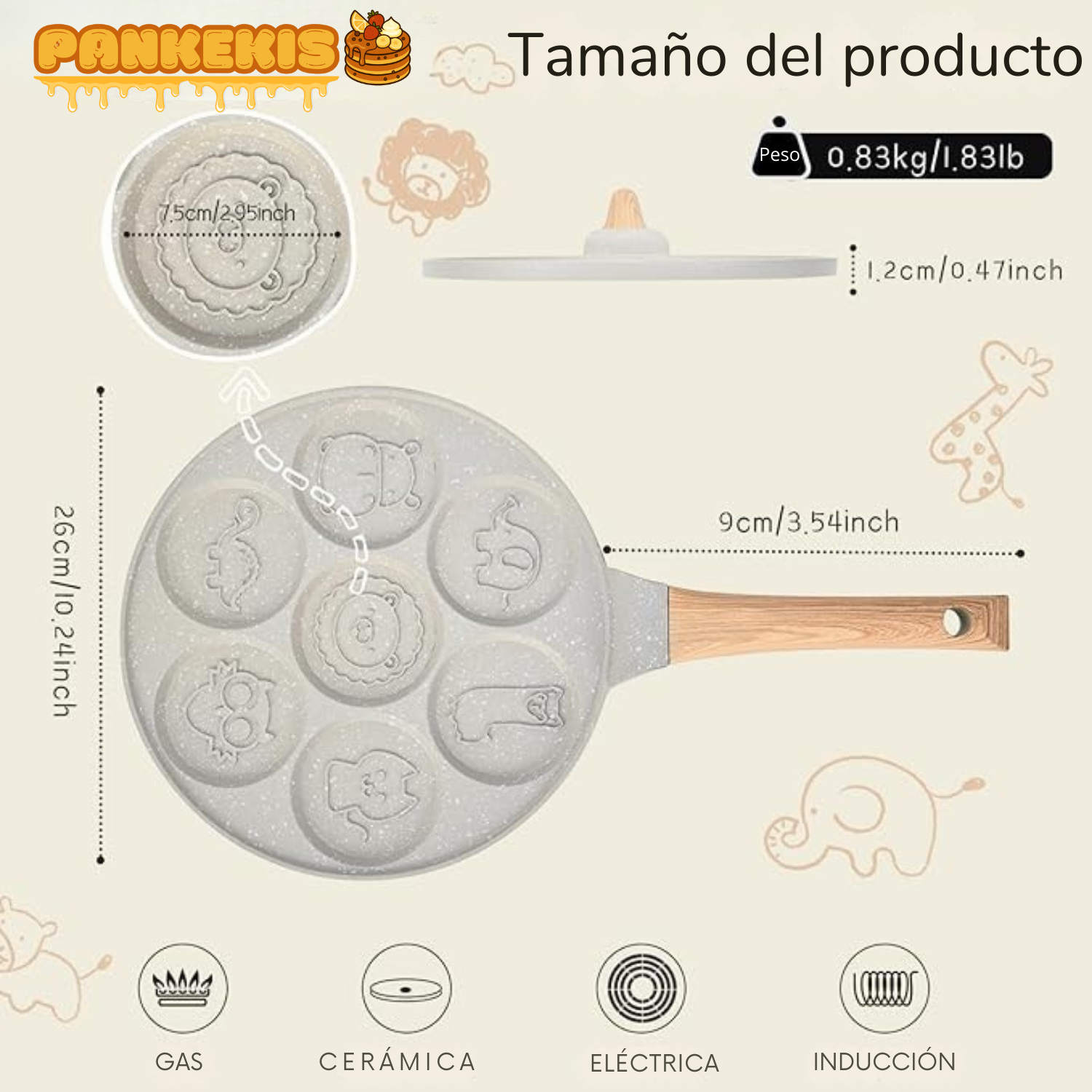 Convierte las mañanas en una aventura: nuestra sartén tiene 7 moldes de animales que hacen que los niños disfruten y aprendan mientras comen.